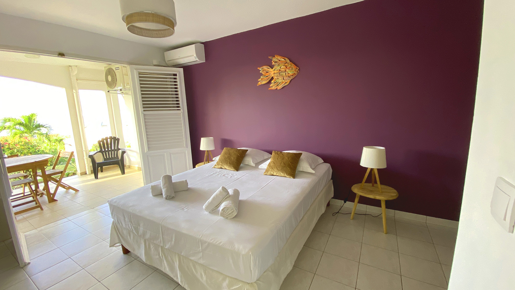 The Indigo apartment is a very pretty two-room apartment of 43 m2, fully equipped and recently renovated. It is located on the heights of Anse Mitan a few minutes walk from the beach. From the 20m2 terrace, you can enjoy, at the table during your meals, a magnificent sea view as well as a 180° view of the bay of Fort-de-France.