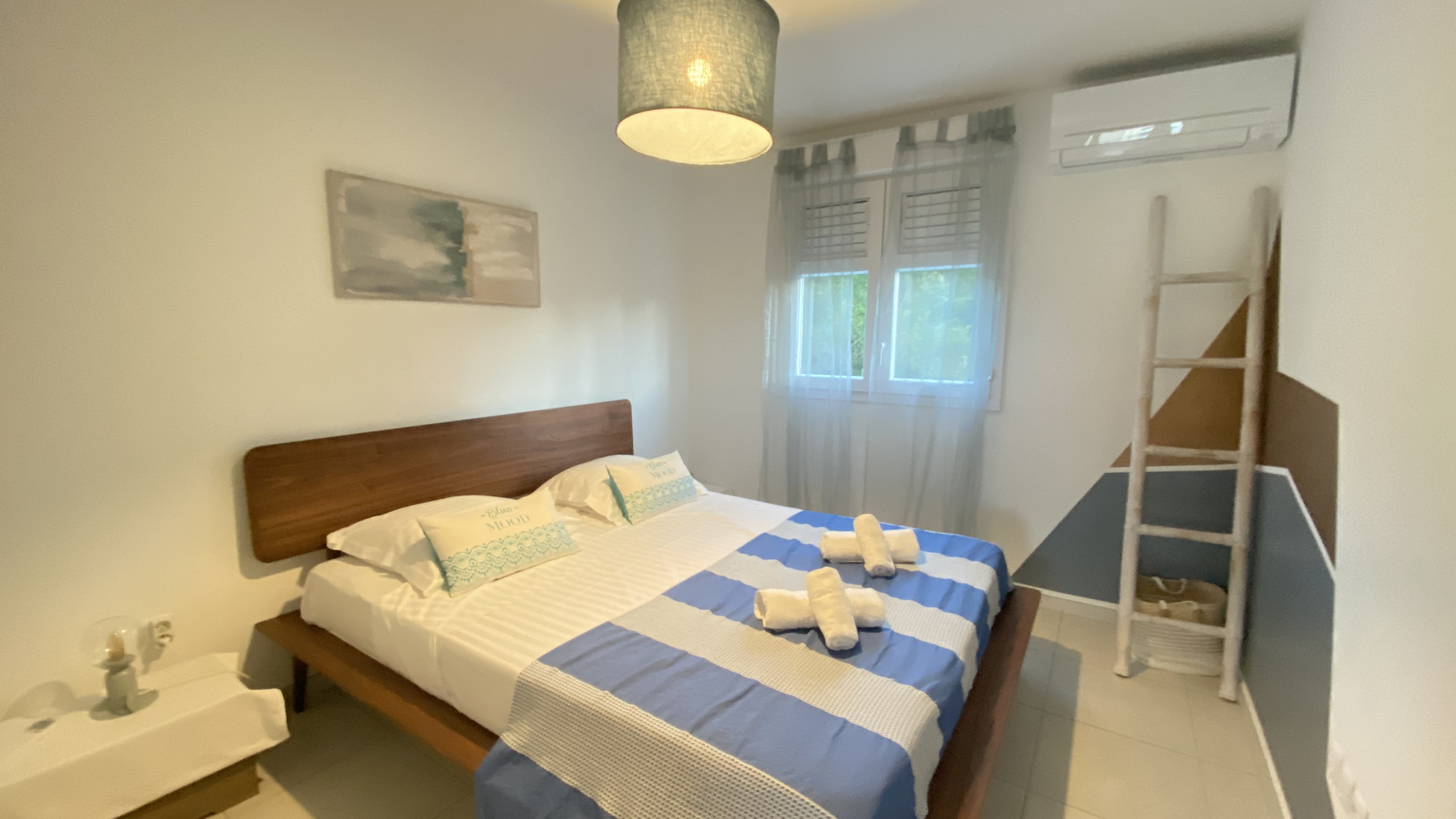 The Atlantis apartment has a beautiful, air-conditioned bedroom with a 160 cm bed and a fitted wardrobe.