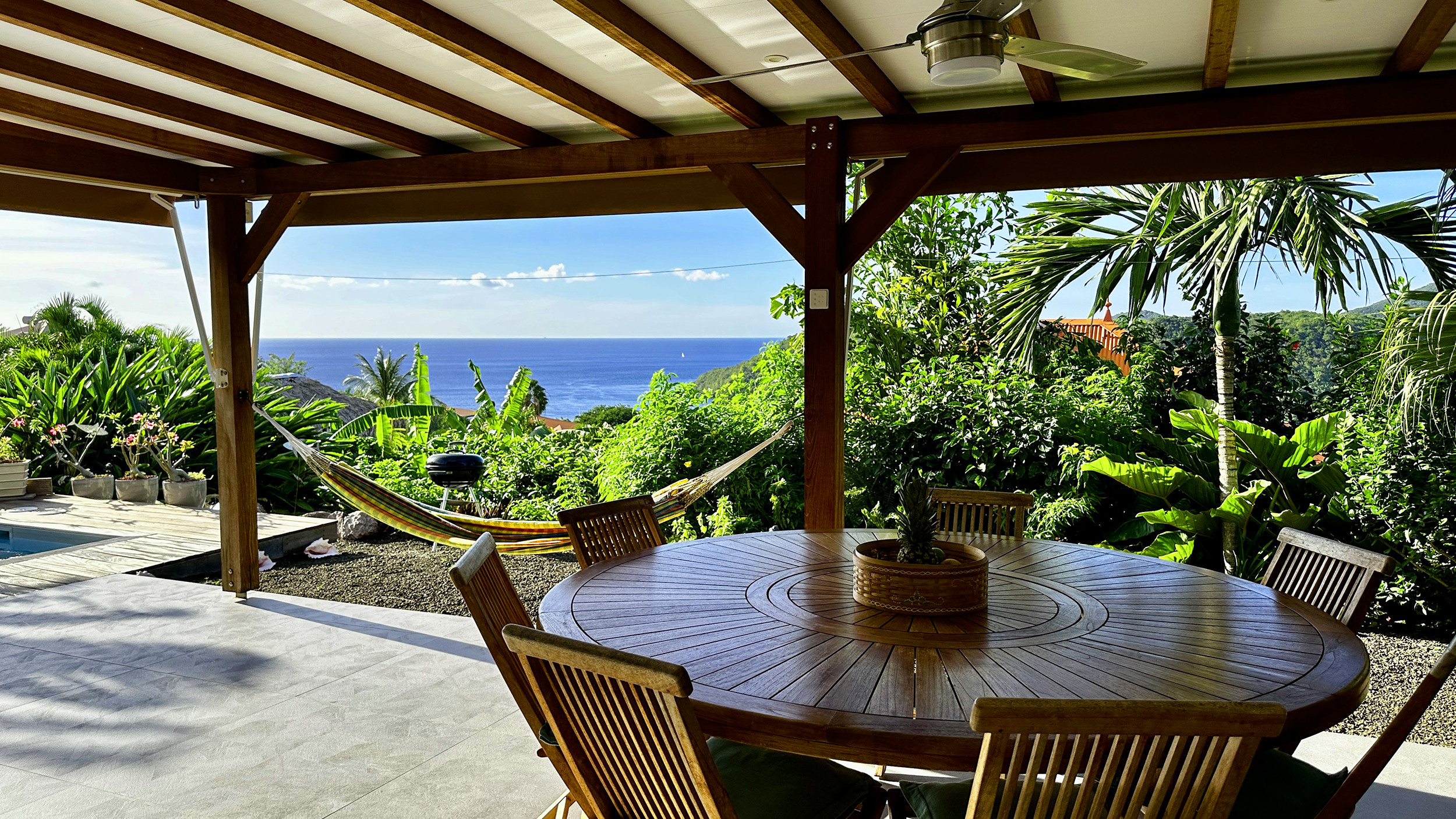 The living space that is the terrace will delight everyone, because you can enjoy at the table this superb view that we never tire of on the Caribbean Sea. An outdoor lounge will allow you to relax and have your aperitifs with the famous Ti' Punch!